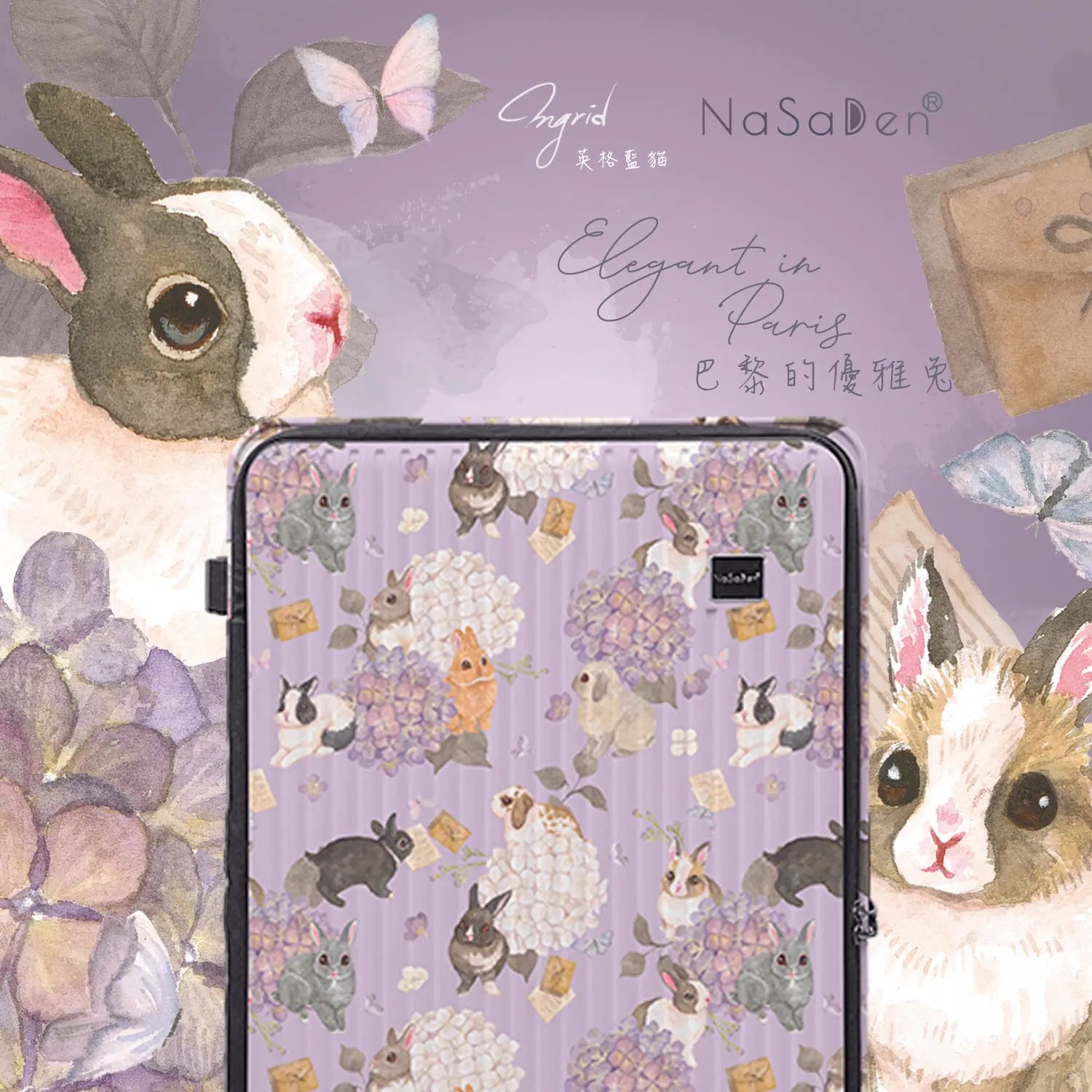 德國NaSaDen納莎登 萊茵系列前開行李箱【英格藍貓聯名款】兔的歐洲散策獨特印花拉鍊行李箱25吋/29吋